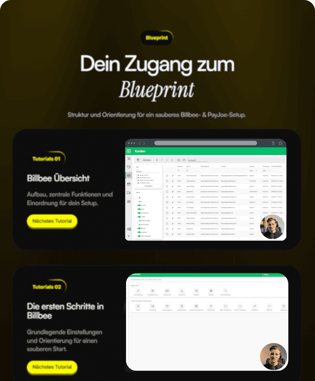 Der Blueprint vermittelt dir eine klare Struktur, kostengünstige alternative und Automatisierungslogiken aus realen Setups, mit denen du dein Billbee- & PayJoe-Setup sauber selbst aufbauen kannst.